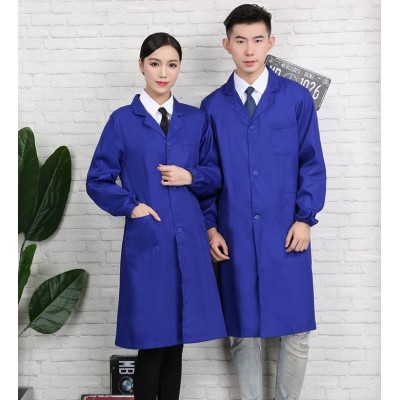 蓝大褂工作服 男女士实验室大褂子长款搬货搬运工衣服 耐磨长大褂 宝蓝色 SKU:RX0028685