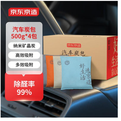京东京造 汽车活性炭包新车除味除甲醛家车用除臭去味空气净化碳包500g*4