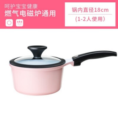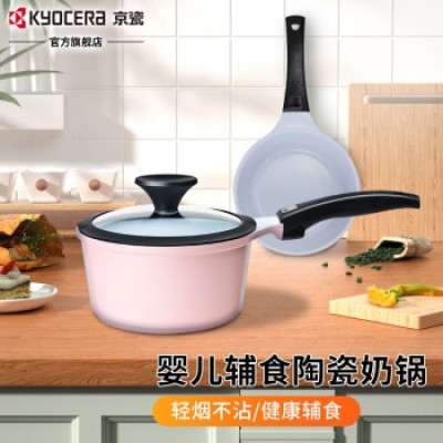 京瓷(KYOCERA)宝宝辅食锅汤锅不粘锅婴儿小奶锅平底锅儿童奶锅泡面 辅食锅(粉色) 18cm