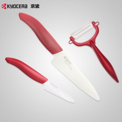 首页 > 用具 > 其他厨房用具 > 京瓷(KYOCERA)陶瓷刀厨房刀具三件套 家用菜刀切片刀水果刀刮皮削皮刨皮刀 陶瓷经典3件套-红柄白刃