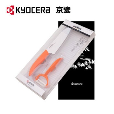 京瓷(KYOCERA)水果刀陶瓷刀刮果刀削皮刀削皮器多功能刀宝宝辅食刀具套装日本 橙色果蔬刀 2件套