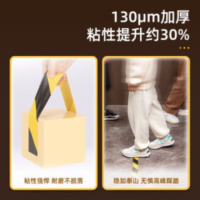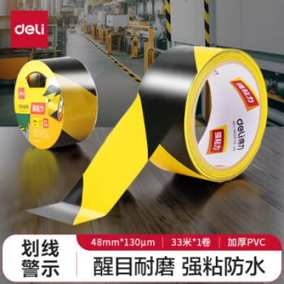 得力(deli)黄黑安全警示胶带 加厚PVC耐磨防水地标线胶带 警戒隔离斑马线胶带5S定位 48mm*33m 1卷 33771