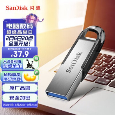 闪迪 (SanDisk) 64GB U盘CZ73 安全加密 高速读写 学习办公投标 电脑车载 金属优盘 USB3.0