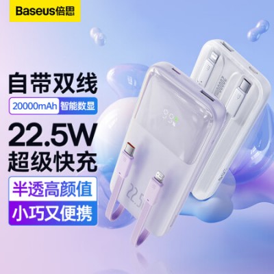 首页 > 电气设备 > 蓄电池及充电装置 > 倍思 自带线充电宝22.5W超级快充20000毫安时 兼容苹果PD20W快充大容量移动电源 适用于苹果14/13华为小米 紫 zangjh