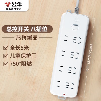 首页 > 建筑建材 > 开关插座 > 公牛(BULL)插座/插线板/插排/排插/接线板/拖线板 8位总控全长1.8米 GN-B3440