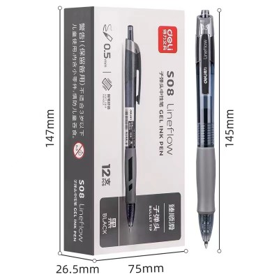 得力(deli)【顺滑之星】臻顺滑中性笔签字笔 0.5mm子弹头按动笔水笔 办公用品 黑色 12支/盒S08