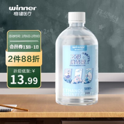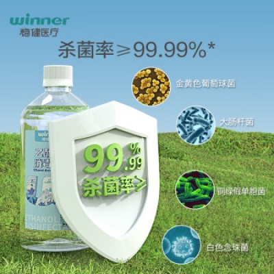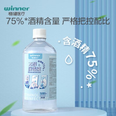 稳健(Winner)75%液体酒精消毒液500ml/瓶 食用级酒精杀菌率大于99.99% 免洗速干洗手液家庭常备消毒杀菌