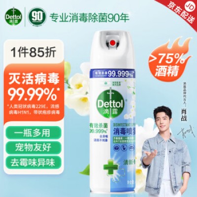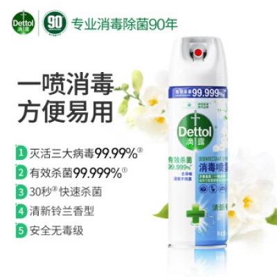 滴露(Dettol)75%酒精消毒喷雾454ml 快递宠物婴儿用品衣物除菌去味清新铃兰