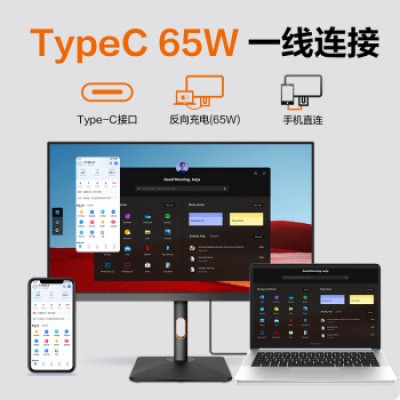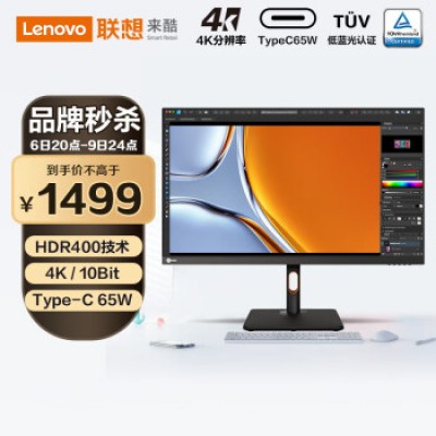联想来酷 Lecoo 27英寸4K IPS HDR400 10Bit Type-C大功率65W TUV爱眼认证 旋转升降专业电脑显示器M2721PL