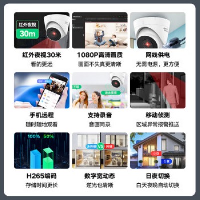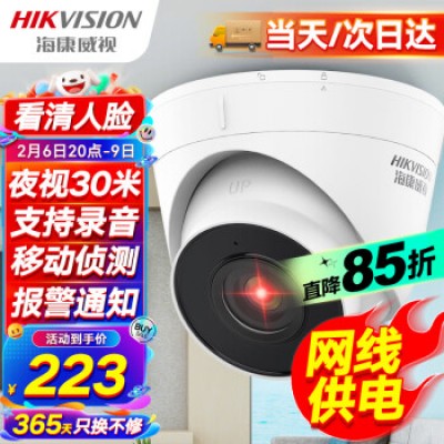 首页 > 广播、电视、电影设备 > 视频设备 > 视频监控设备 > 海康威视监控摄像头200万室内外监控器拾音红外夜视30米可录音POE网线供电手机远程 T12H-IA 2.8MM