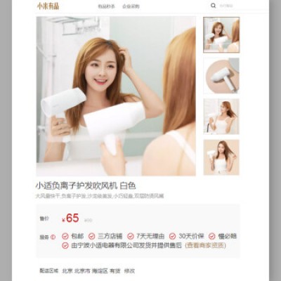 首页 > 电气设备 > 电吹风机 > 小适小米有品有售小适家用电吹风机便携1800W大功率2000万负离子吹风筒 A1-W