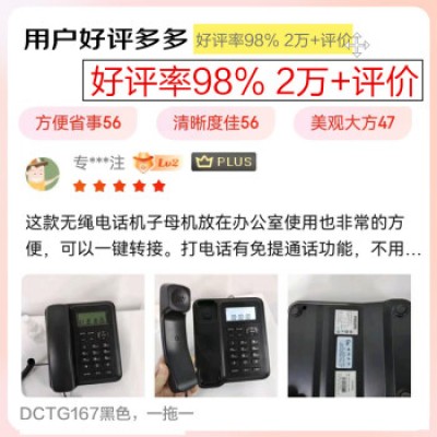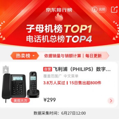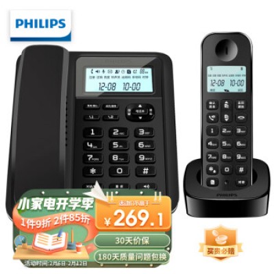 首页 > 通信设备 > 普通电话机(不包含移动电话) > 飞利浦(PHILIPS)数字无绳电话机 无线座机 子母机 办公家用 信号覆盖广 屏幕白色背光 DCTG167一拖一黑色