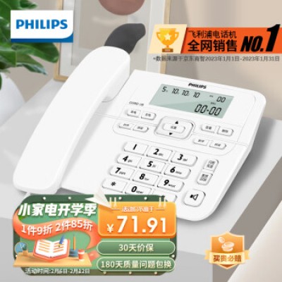 首页 > 通信设备 > 普通电话机(不包含移动电话) > 飞利浦(PHILIPS)电话机座机 固定电话 办公家用 来电显示 双接口 免电池 CORD118白色