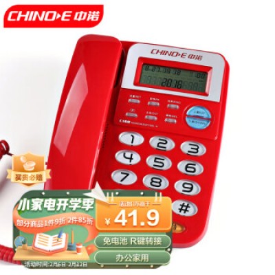 中诺电话机座机固定电话办公家用座机电话R键转接免电池双接口C168红色办公伴侣