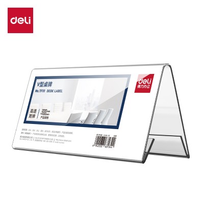 得力(deli)PET材质耐摔V型桌牌 会议牌席卡桌签活动现场三角台卡/立牌/展示牌 会议姓名牌座位牌 学生/办公用品【200mm*100mm】TF111V