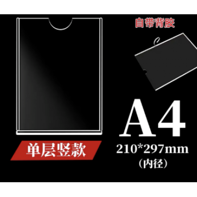 透明插槽插卡照片展示板 展示牌 21*29.7cm单层竖款 带双面胶 2个装(组)