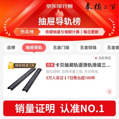 首页 > 建筑建材 > 五金附件 > 卡贝抽屉滑轨阻尼缓冲轨道滑轨三节轨道抽屉导轨五金配件滑道抽屉12寸