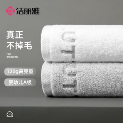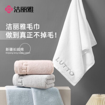 洁丽雅毛巾不掉毛A类新疆棉洗澡洗脸纯棉毛巾柔软洗脸2条装74*34cm120g