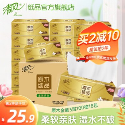 首页 > 办公用品 > 卫生用纸制品 > 清风 原木金装抽纸3层100抽纸巾餐巾纸卫生纸擦手纸箱装 18包整箱