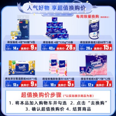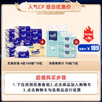首页 > 办公用品 > 卫生用纸制品 > 得宝(TEMPO)抽纸无香4层加厚100抽*18包湿水不易破 纸巾 餐巾纸 卫生纸整箱