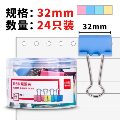 得力(deli)8553-3#彩色长尾票夹32mm筒装(混)(24只/筒)