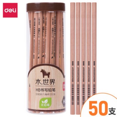 得力 S908 原木HB铅笔 50支/桶 单位(支)