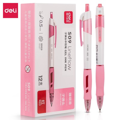 得力(deli) 臻顺滑办公中性笔 0.5mm 弹簧头 S09 红色