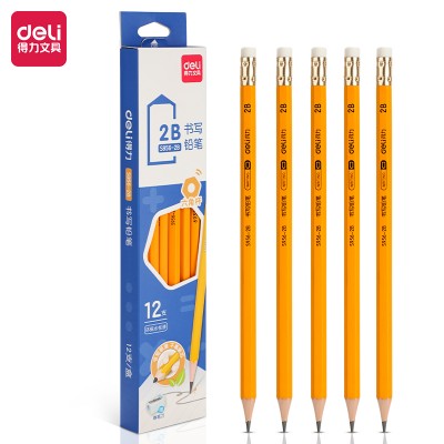 得力S956-2B_黄杆办公皮头2B铅笔(黄)(12支/盒)