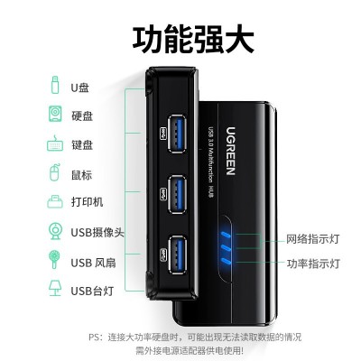 首页 > 信息化设备 > 数据线 > 绿联(UGREEN)20265 USB3.0分线器 千兆有线网卡网口转换器HUB集线器 笔记本电脑台式机RJ45网线接口扩展坞