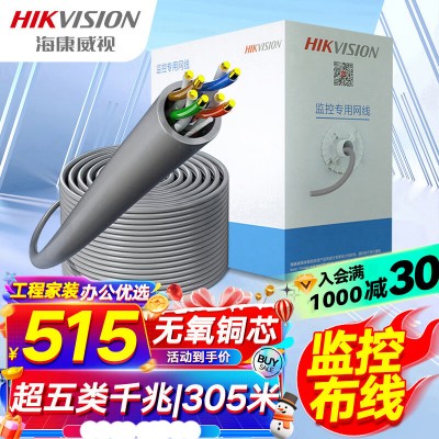 首页 > 信息化设备 > 网线 > 海康威视超五类网线工程级无氧铜箱线CAT5e类百兆网络过福禄克双绞线监控家装305米/箱 1LN5E-E/E