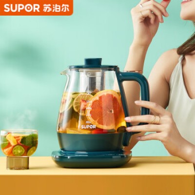 苏泊尔(SUPOR)煮茶器花茶壶电茶壶电水壶烧水壶电热水壶 1.5L 煮茶壶 玻璃电水壶养生壶SW-15YT01