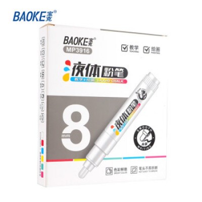 宝克(BAOKE) MP3914无尘液体粉笔 可加墨水 可擦易擦教学黑板笔 顺滑彩色绘画涂鸦白板笔 白色 8mm 可加墨无尘液体粉笔 6支/盒装