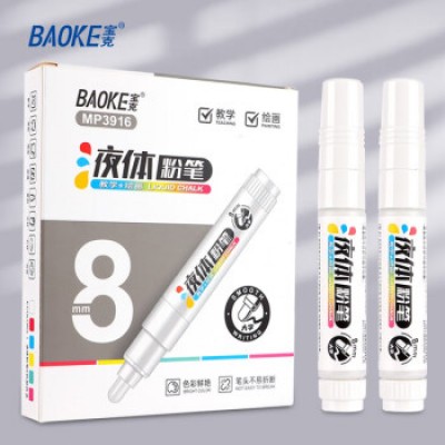 宝克(BAOKE) MP3914无尘液体粉笔 可加墨水 可擦易擦教学黑板笔 顺滑彩色绘画涂鸦白板笔 白色 8mm 可加墨无尘液体粉笔 单支