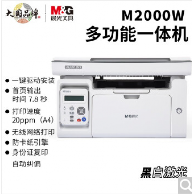 首页 > 办公设备 > A4黑白打印机 > 晨光(AEQ918N3) M2000W 黑白激光三合一多功能一体机打印机 无线wifi家用商用打印 复印扫描 微信分享 打印复印扫描 wifi丨手机打印