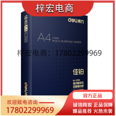 首页 > 办公用品 > 复印纸 > 得力3595佳铂双面复印纸(A4-80g-5包)(单包)